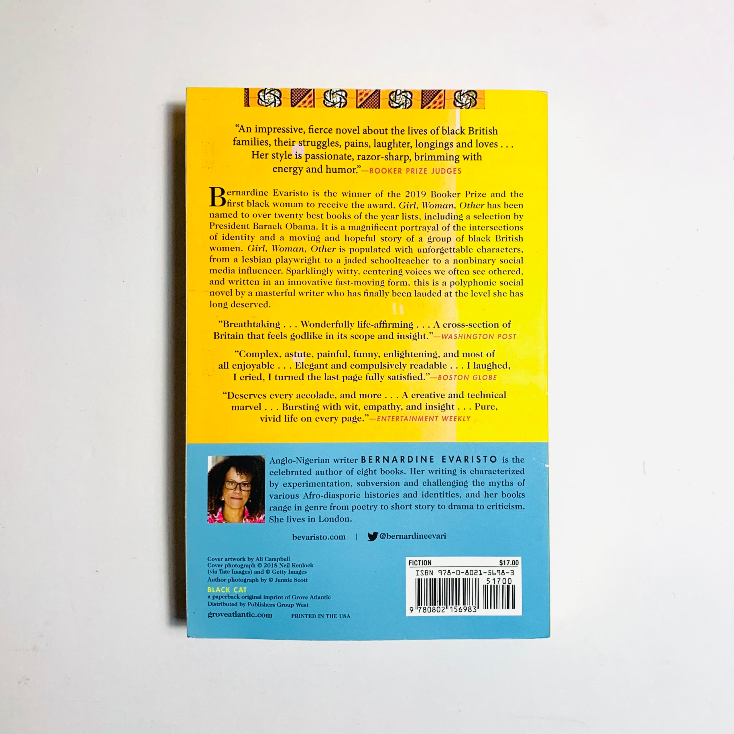 Love this one by Evaristo, a kind of 'fusion fiction' of contemporary London characters, some related, most not, share their intertwining stories, with a family backstory that sounds familiar, but not, but does. Winner of the Booker Prize in 2019, this was one of our favorite 'quarantine books.’ Great copy, little bendy, but like new also.